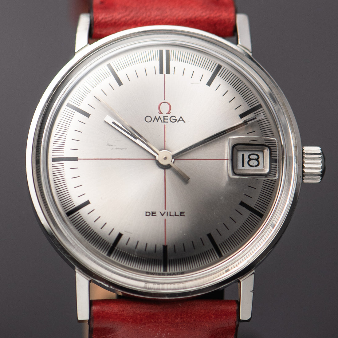 1966 OMEGA DE VILLE TECHNICAL RED CROSSHAIR SUNBURST CAL. 611 REF. 136.019
